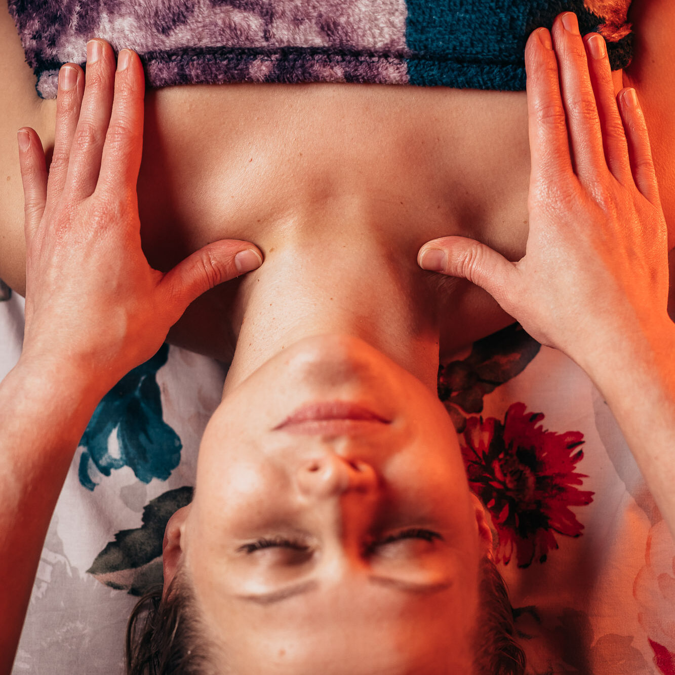 Twarz nie rozluźni się, jeśli ciało pozostaje spięte. Dlatego zaczynam od otwarcia klatki piersiowej i pracy z plecami – miejsc, gdzie gromadzi się stres i emocje.